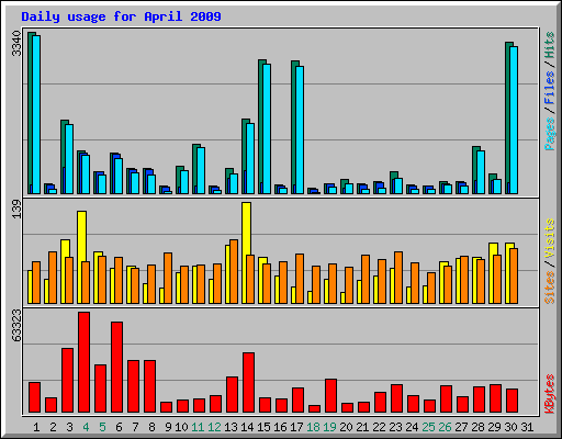 Day | Hits | Files | Pages | Visits | Sites | KBytes | ||||||